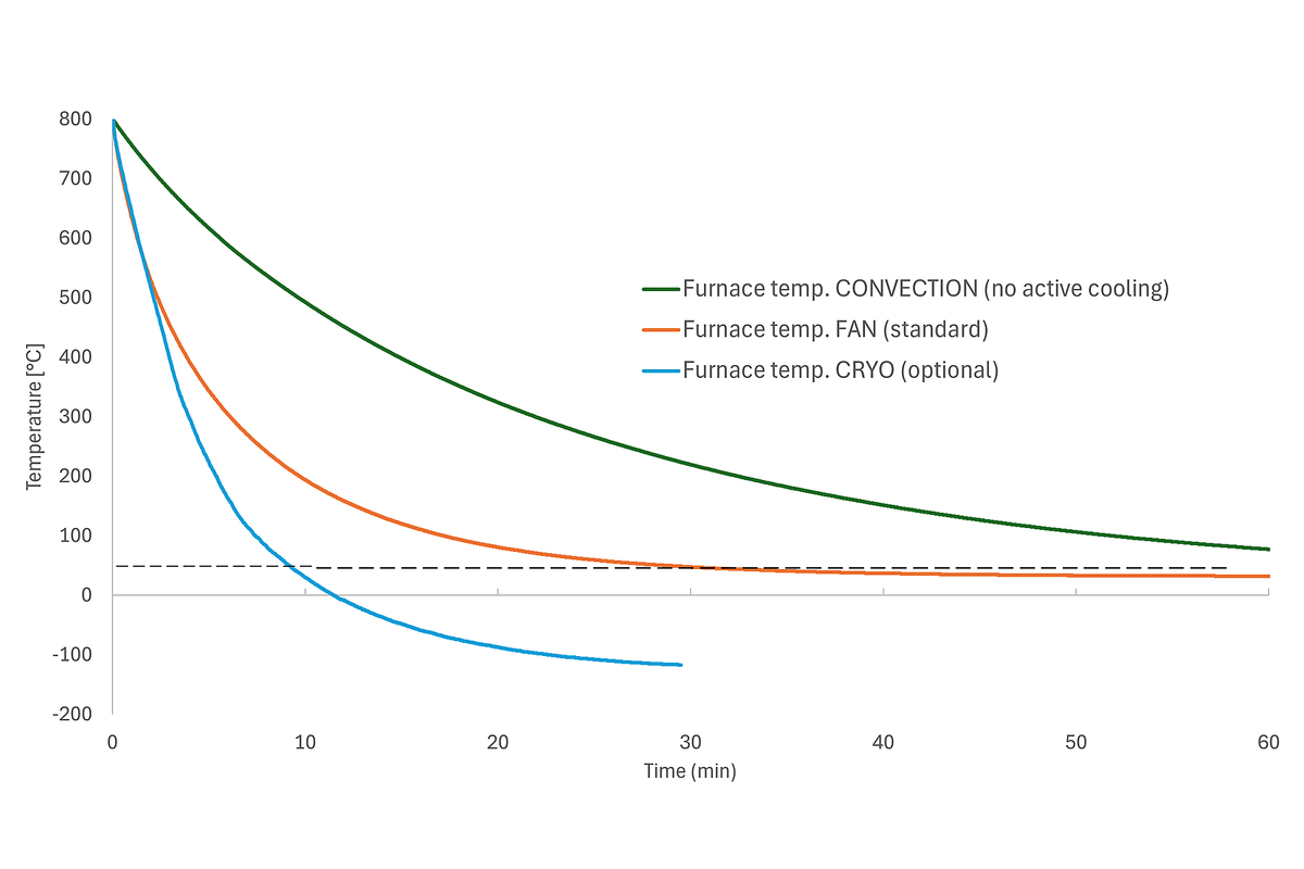 | Elektromos kemence | Maximum temperature: 1.200 °C (1.100°C for regular use) Quick cooling: 30 min (400→50 °C) Cryo cooling: 10 min (800→30 °C) CATCryo II: down to -120 °C Heating rate: 110 °C/min (50 to 500 °C) / 80 °C/min (50 to 1000 °C) |