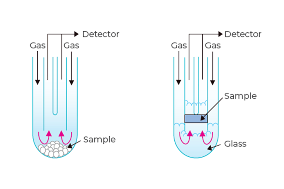 The specific surface area, defined as the total surface area per unit dry mass of a solid, is an important parameter for the characterization of catalysts. It can be determined using the BET method measuring the amount of a gas (e.g. nitrogen) desorbed after the sample is cooled to liquid nitrogen temperature under a helium-diluted adsorptive gas flow and then returned to room temperature. This method is not only dispensable for solid catalysts, but also for various powdered samples, such as adsorbents.
